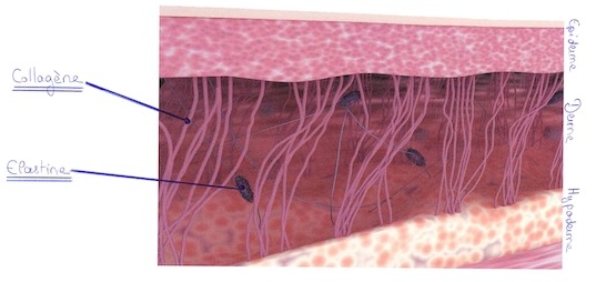 Ces protéines sont situées dans le derme, entre la couche supérieure de la peau (épiderme) et la couche la plus profonde (hypoderme).