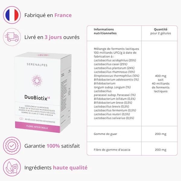 Comme pour tout complément alimentaire, il est recommandé de consulter votre médecin avant de prendre DuoBiotix 14.