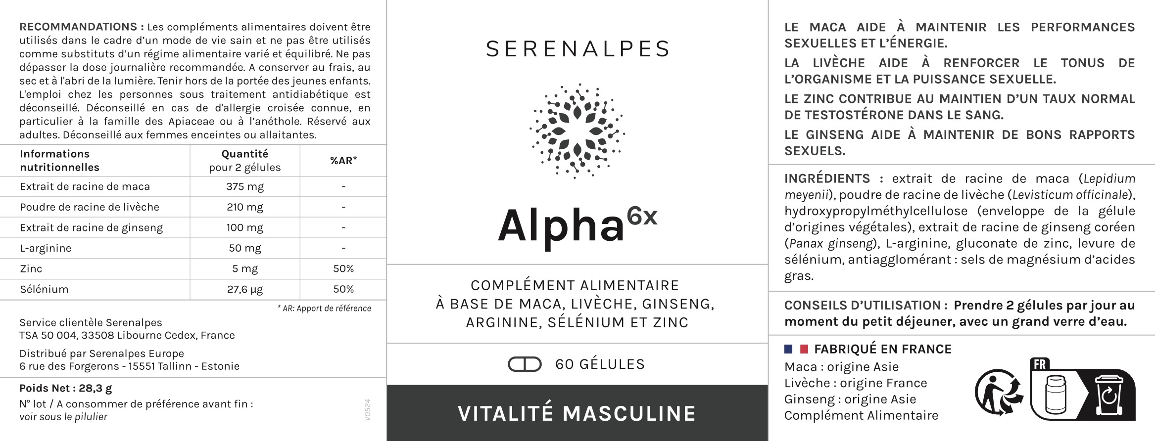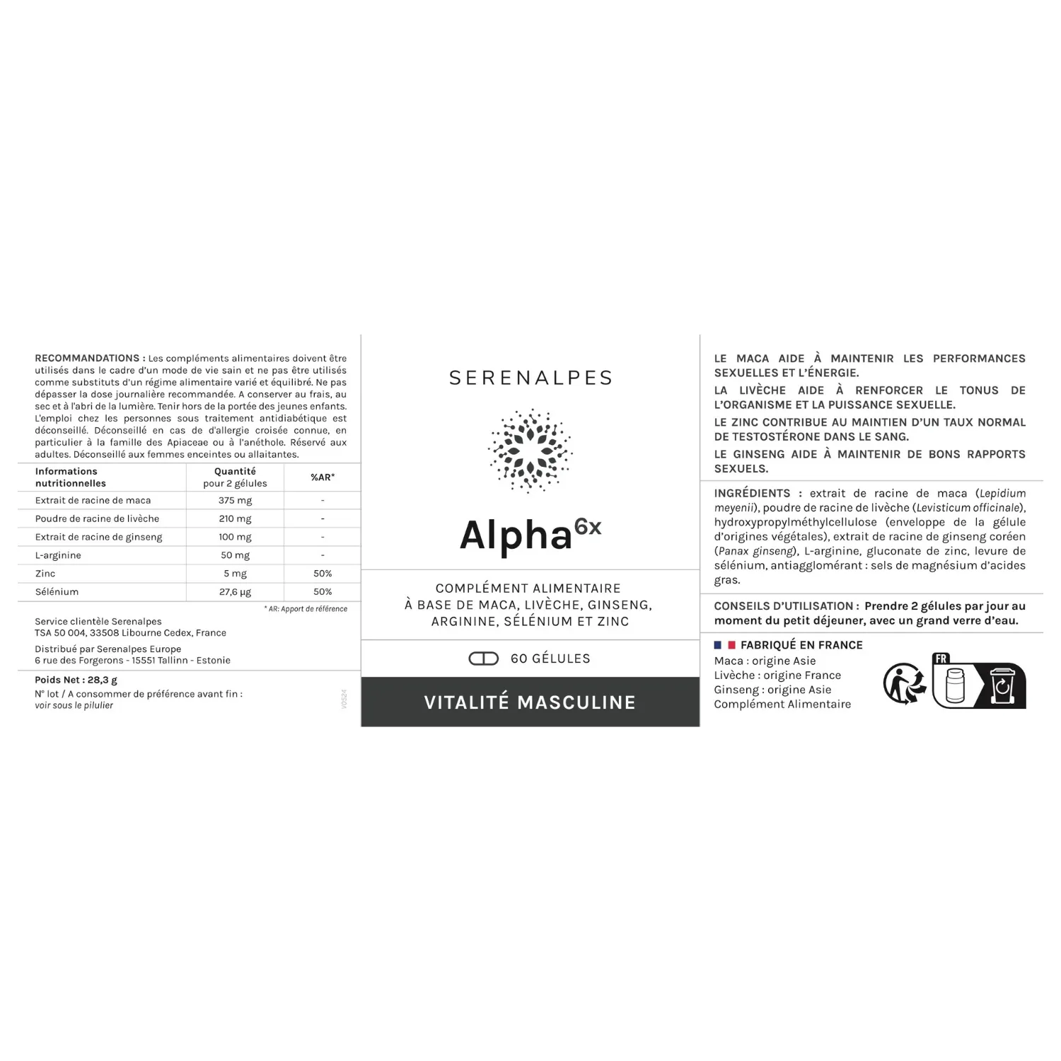 Comme pour tout complément alimentaire, il est recommandé de consulter votre médecin avant de prendre Alpha 6x.
