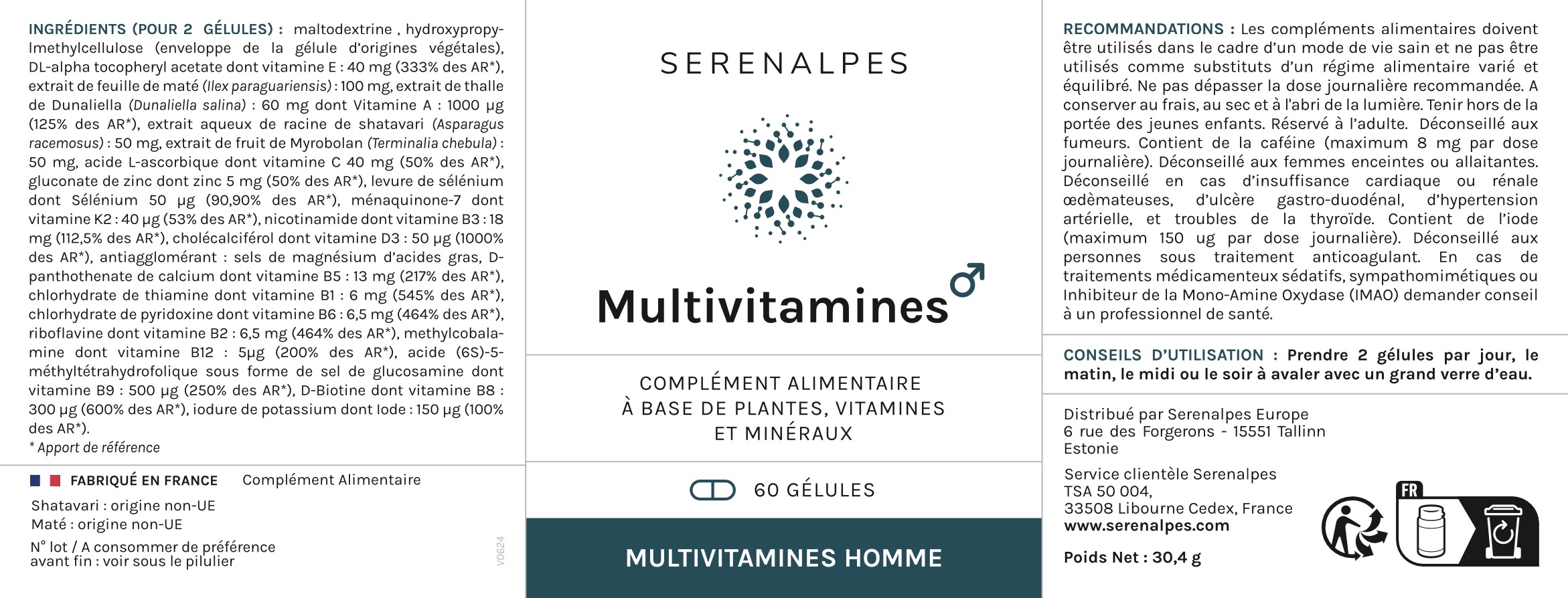 Comme pour tout complément alimentaire, il est recommandé de consulter votre médecin avant de prendre Multivitamines pour homme.