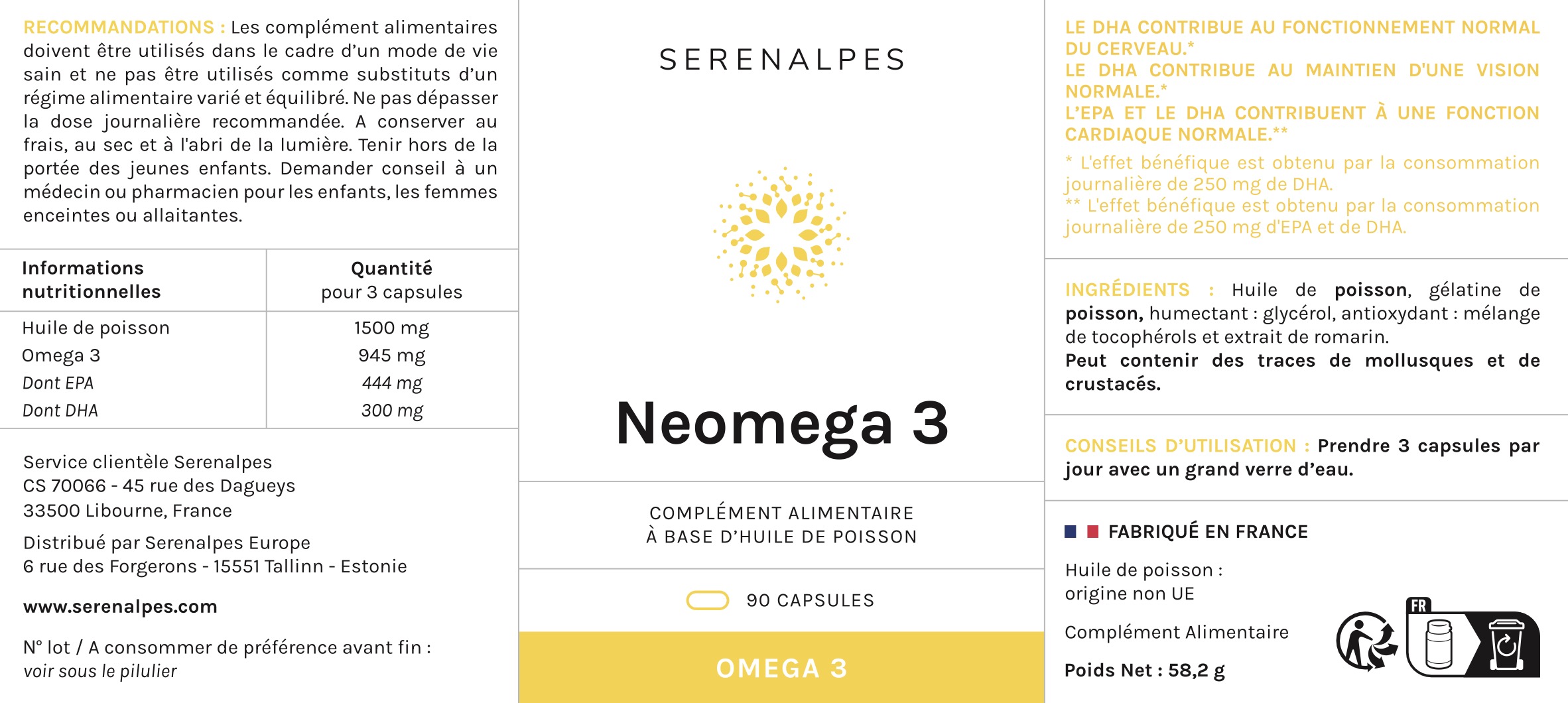 Comme pour tout complément alimentaire, il est recommandé de consulter votre médecin avant de prendre Neomega 3.