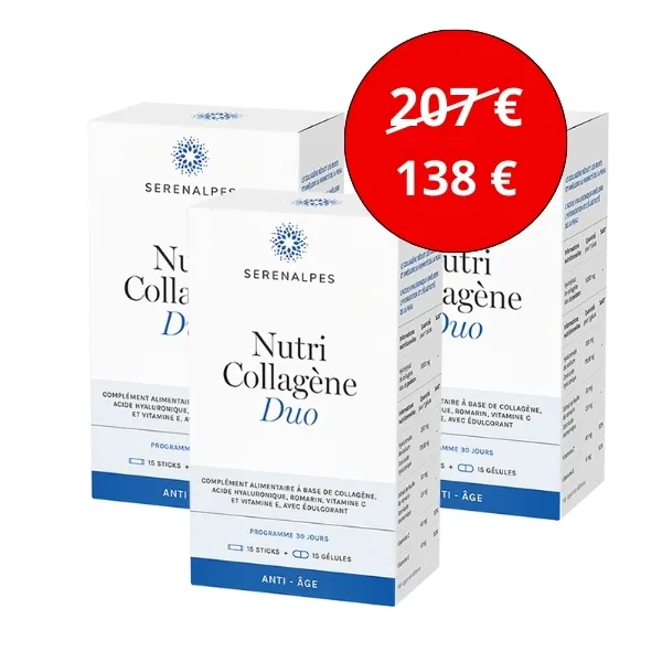NutriCollagène Duo est un produit d’origine naturelle, il fait effet sur le long terme. C’est pourquoi nous vous conseillons une cure de 3 ou 6 mois pour commencer.