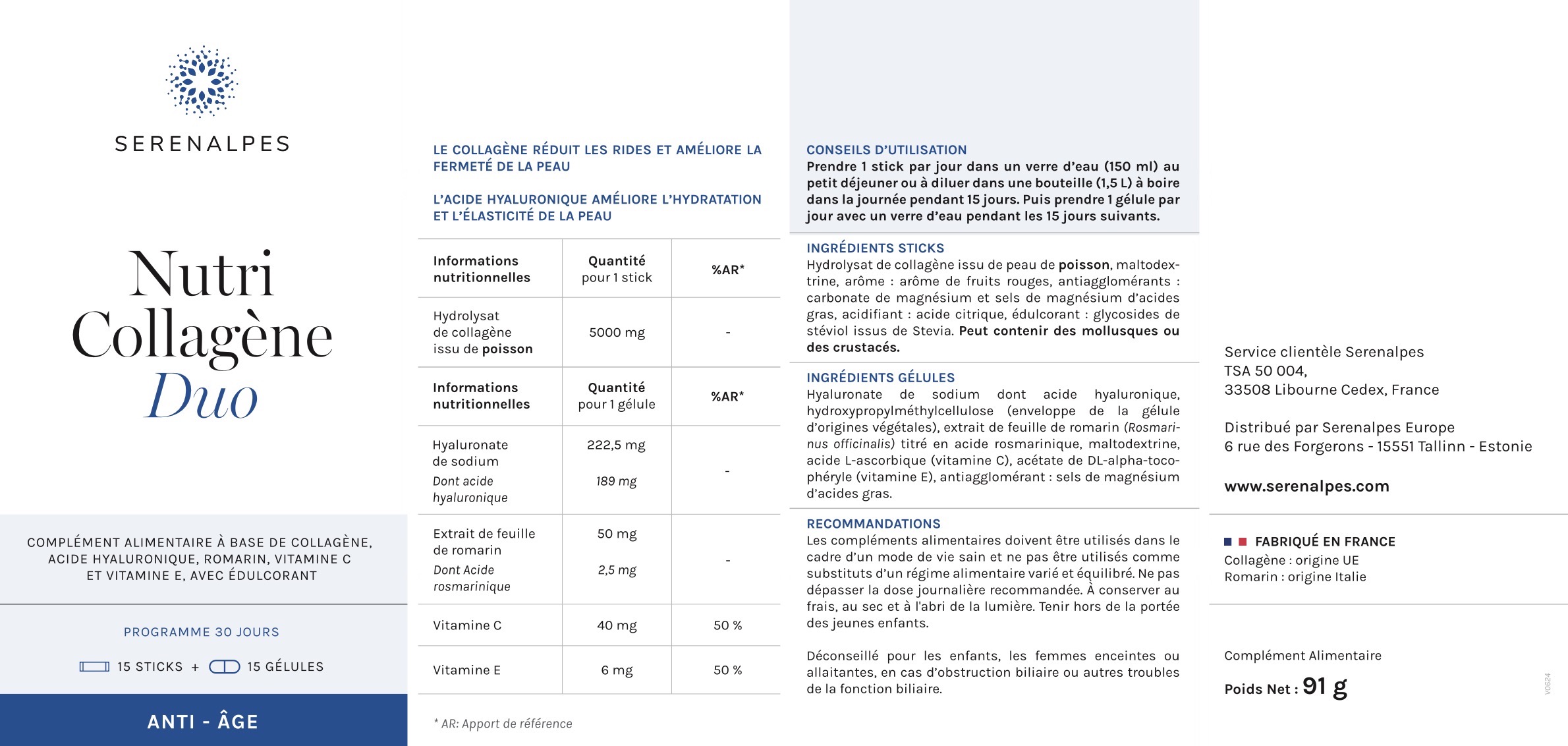 J'étais à la recherche d un complément alimentaire fabriqué en France à base d acide hyaluronique quand je suis tombée sur une pub des produits […] Serenalpes. Après avoir trouvé j ai commandé le nutri collagene duo et j ai pu voir au fil des mois que mes ridules étaient moins visible ma peau est devenue beaucoup plus belle. Je suis complètement conquise par se produit que je recommande.